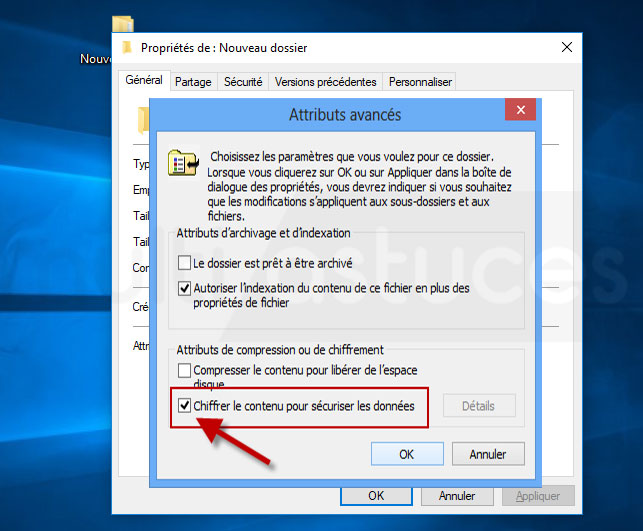 Dans « Comment protéger un dossier par mot de passe sous Windows XP, 7, 8 et 10 », la case « Chiffrer le contenu pour sécuriser les données” de la dernière fenêtre est grisée, donc on ne peut pas la cocher.