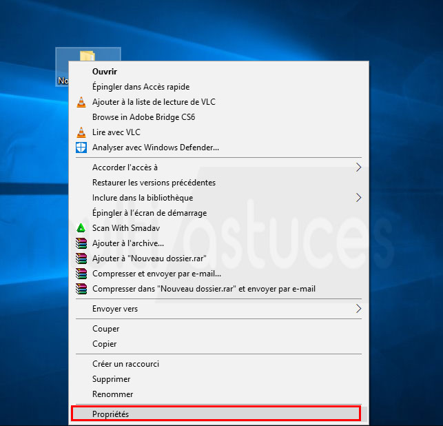 - Cliquez avec le bouton droit sur le dossier, puis sélectionnez l’option “Propriétés”.